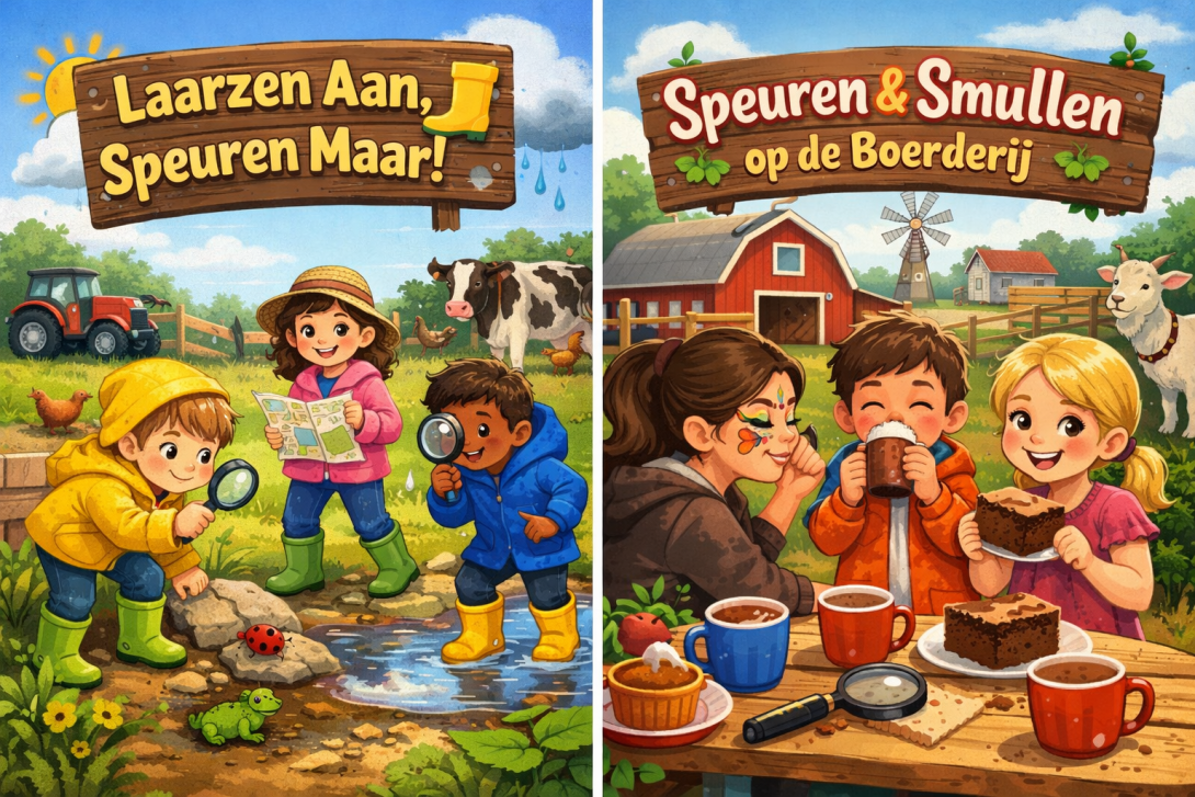 In de vakantie organiseren we een gezellige en actieve speurtocht op onze boerderij. Anderhalf uur lang mogen kinderen samen met hun ouder/verzorger of begeleider rond speuren op ons erf. Lekker op ontdekking langs onze dieren, het groen en alles wat bij het boerenleven hoort.