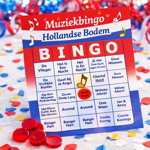 🎶 Muziekbingo met bekende Nederlandse hits of van Nederlandse artiesten!