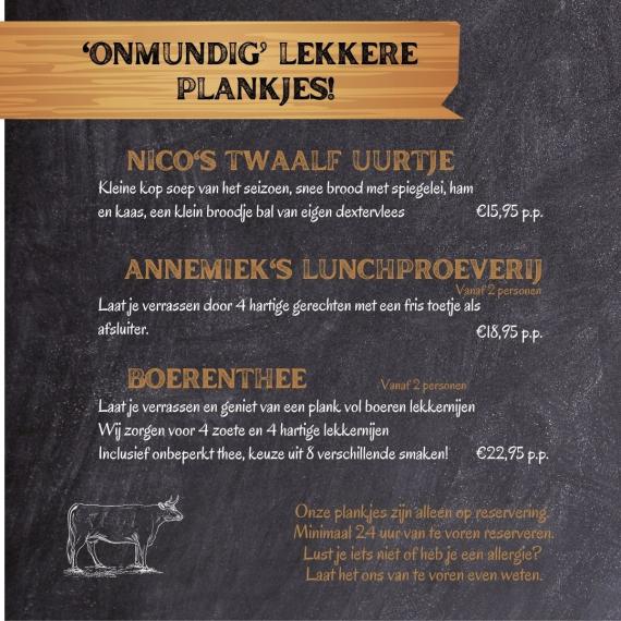 Wil je zeker zijn van een plekje neem dan even contact met ons op en reserveer even. Het liefst telefonisch via 0650417071. Ook voor onze 'Onmundig lekkere plankjes' vragen wij je te reserveren. Zo kun jij genieten van een unieke lunch-proeverij!